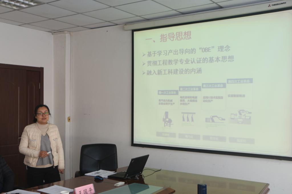 专家组组长王永泉教授主持会议。机械设计制造及其自动化专业负责人李娜娜、机器人工程专业负责人樊琛及能源与动力工程专业负责人李莉分别从培养方案修订指导思想、前期调研情况、培养目标与毕业要求、专业特色、课程体系与学分结构、理论与实践课程设置等方面向专家组进行了详细汇报。