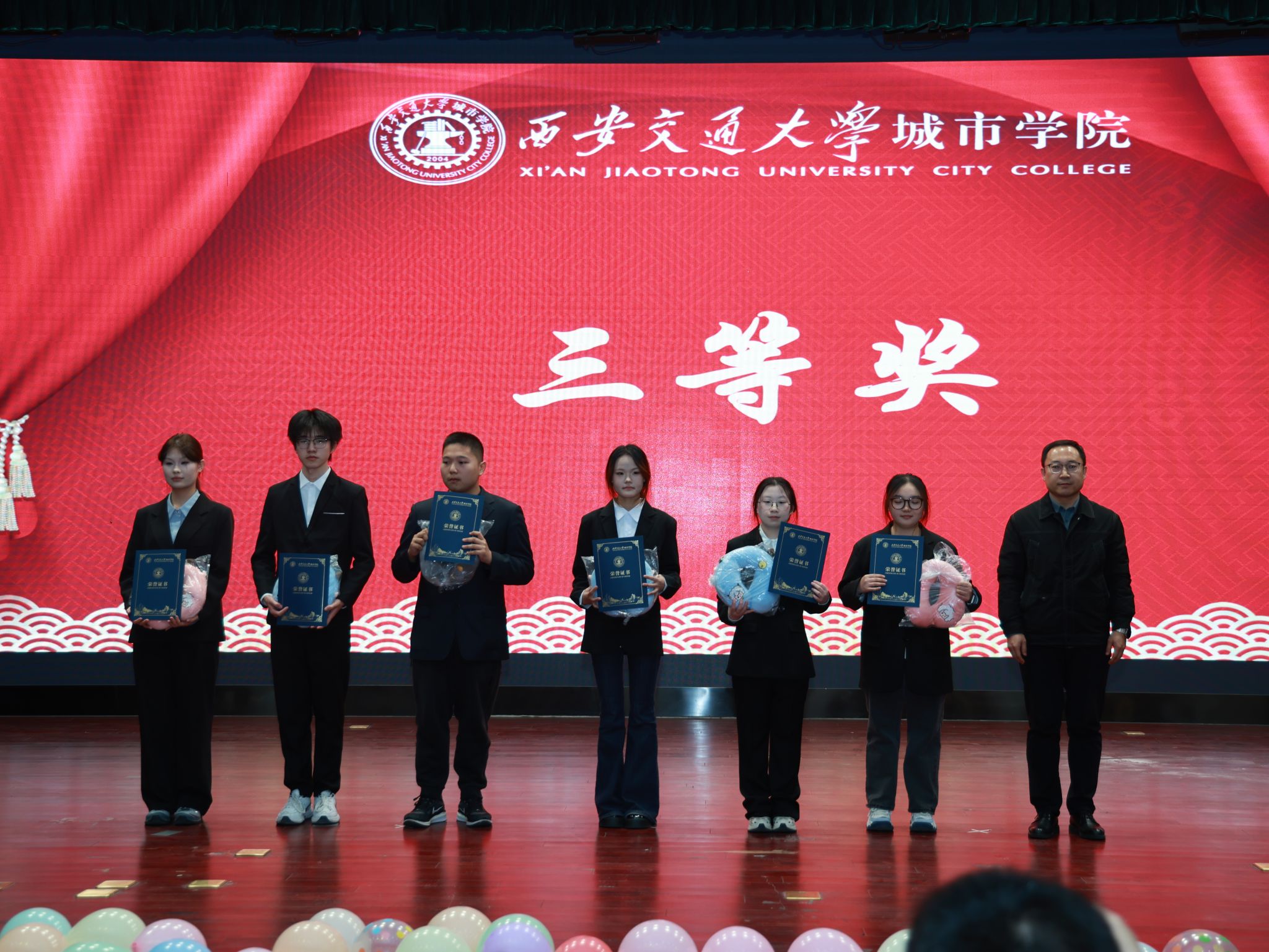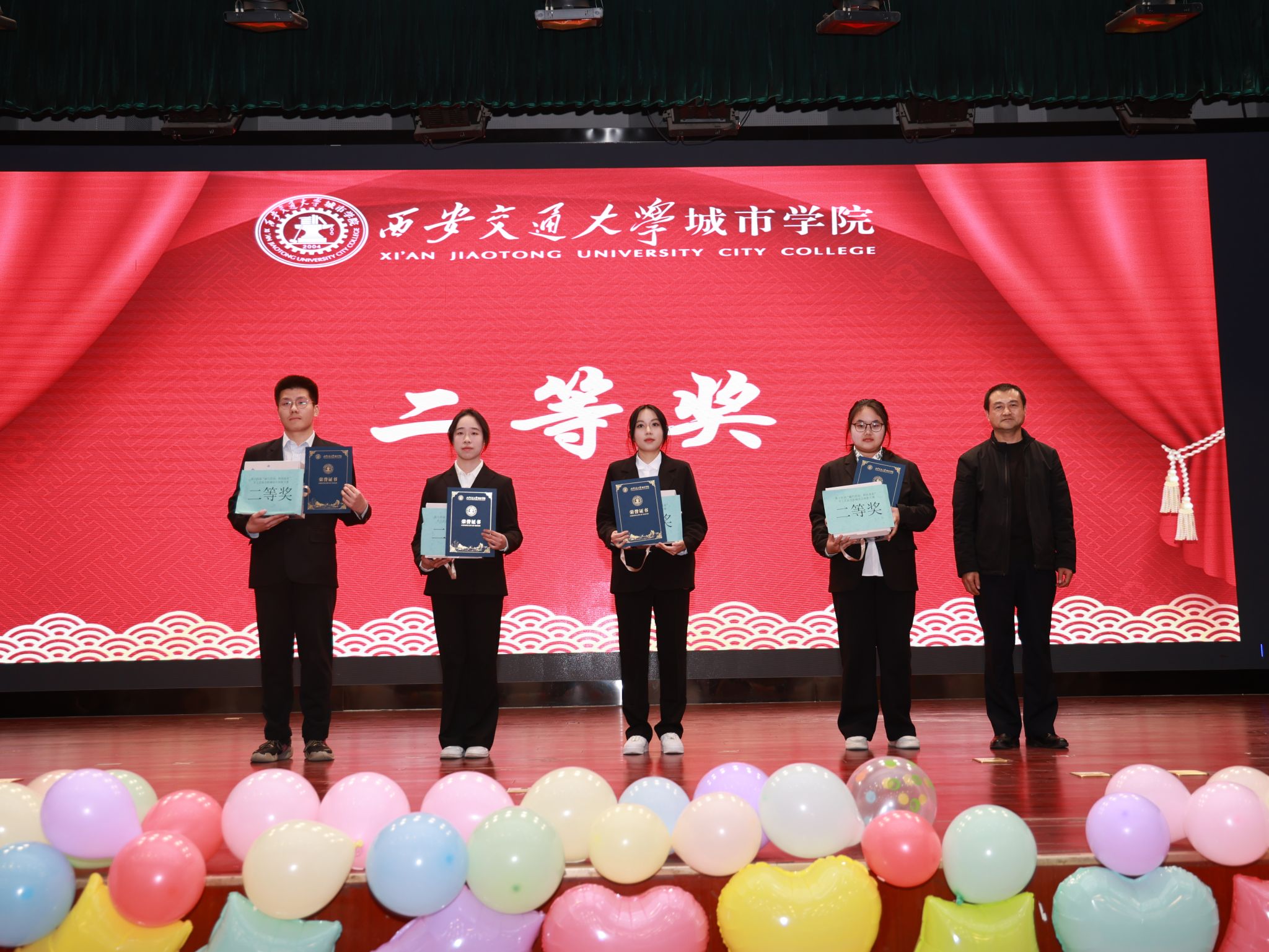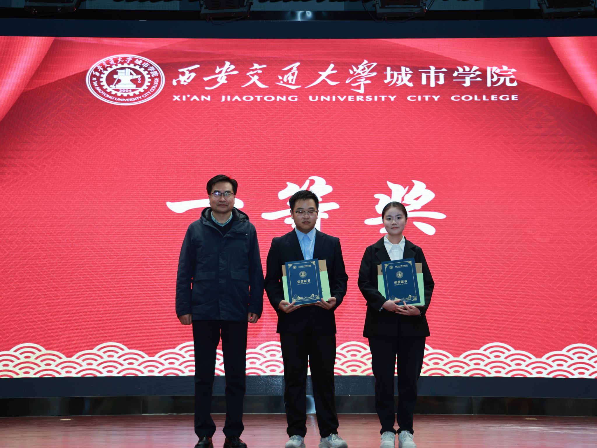 经评审,作品《基于STM32F103及大疆NAZA固件设计的四旋翼飞行器》与《三秦载红一古韵承风》等作品荣获各类奖项,学院院长牛海波宣布比赛结果,王永泉校长、陈书荣副校长、霍伟森老师分别为获奖学生颁奖。