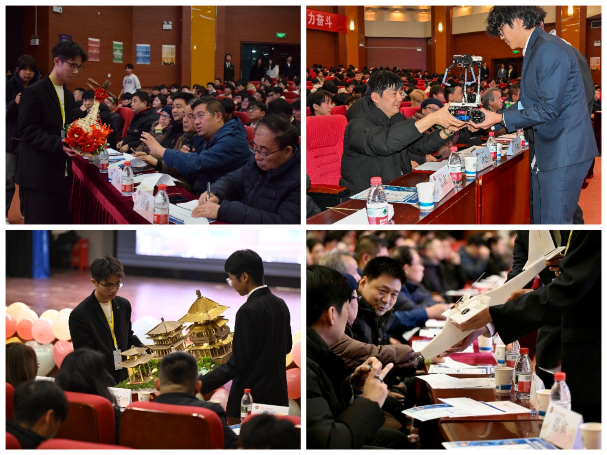 为激发学生创新活力,促进传统手工艺与现代机械设计的深度融合,12月16日,智能制造与新能源学院在教二报告厅举办了“融巧思创,探技求真”第十四届手工艺品及机械设计创新大赛。校长王永泉,校党委副书记、副校长陈书荣,党委工作部部长霍伟森,学生工作处处长辛红伟,智能制造与新能源学院院长牛海波,学生工作处副处长姚敏、张福全,党委工作部副部长、校团委书记茹静,艺术学院教师杨楼生,西安新东方烹饪技工学校校长助理章亚琴及校友代表陈彦毓、曹怡婷一行等嘉宾莅临现场。学院专家与教师代表担任大赛评委,学院院务会成员、二级学院学生工作负责人、团工委书记及全体辅导员列席。本次大赛在机械青年说官方抖音全程直播,线上线下两千余名学生参与,决赛由耿锦一添、梁卓恒主持。