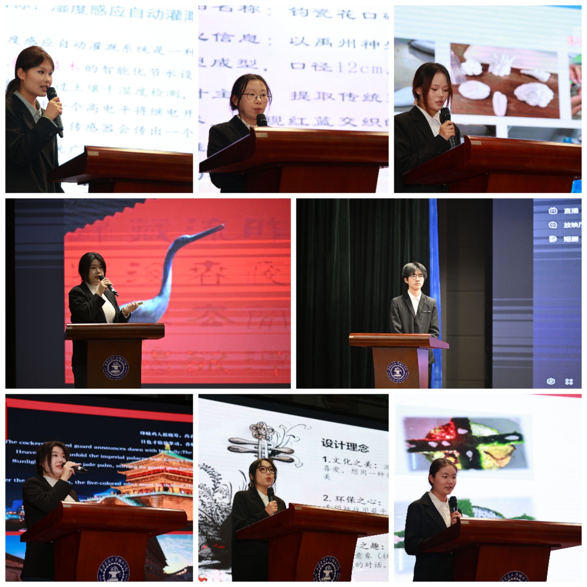 经过前期多轮选拔,共有12件优秀作品脱颖而出晋级决赛。参赛选手通过PPT演示,全面介绍了作品的创作理念、制作过程、成果展示与发展展望。手工艺类作品巧妙融合非遗技艺与现代审美,机械设计类作品则体现出扎实的技术功底与实用价值。评委们从设计内涵、技术实现等角度进行专业点评,并提出了建设性优化意见。