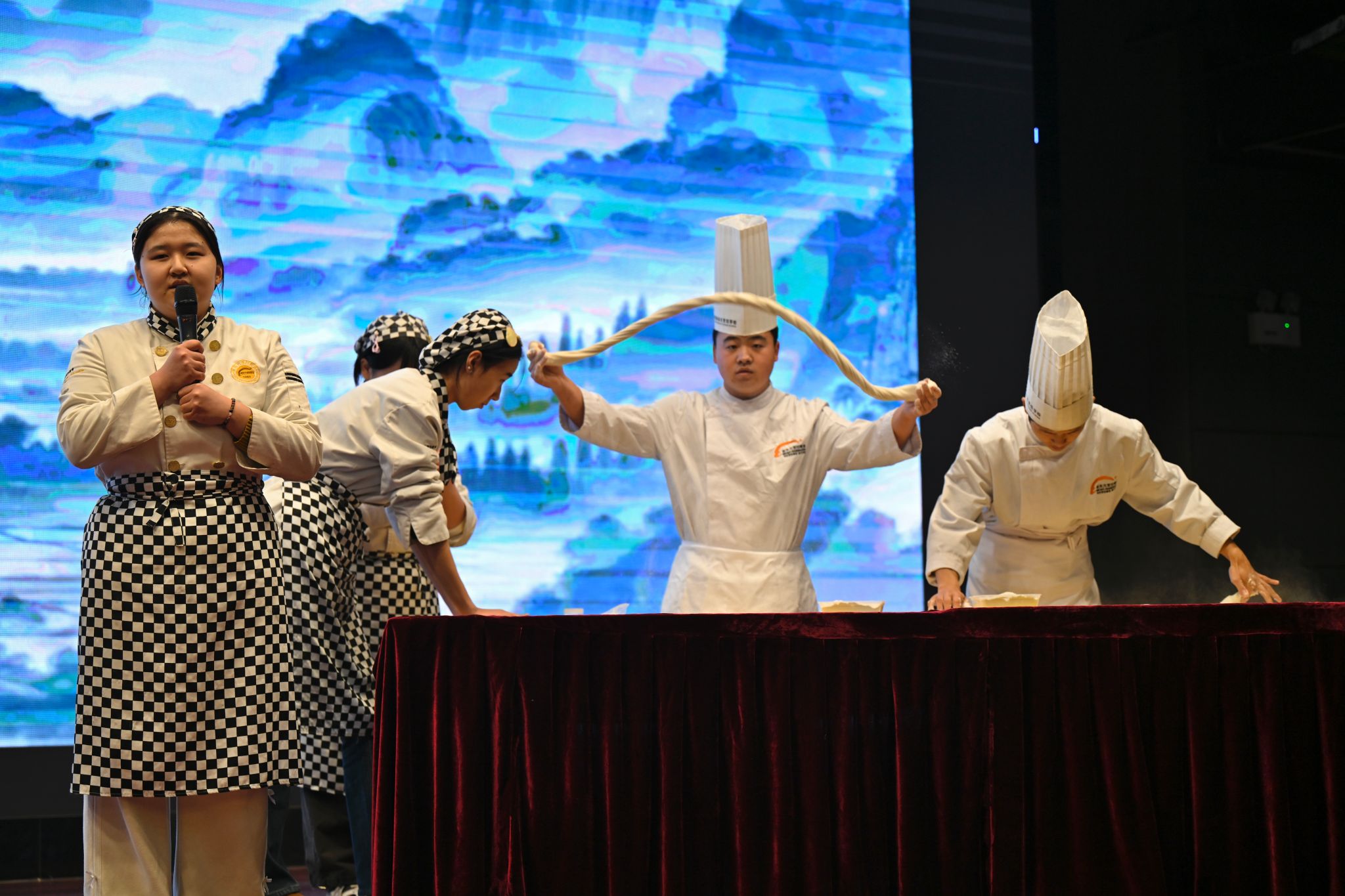 西安新东方烹饪技工学校学员带来的“糖塑万象·技绽芳华”特别展览,为现场增添了浓厚的传统文化氛围。随后由学院学生工作负责人王丽丽老师宣读本次评分规则:本次大赛分为手工艺赛道和机械设计创新赛道,主要从选手的仪态、语言流畅度、应变能力、作品是否符合主题、是否具有创新性、观赏性,PPT内容是否准备充分以及答辩时间等方面进行打分。