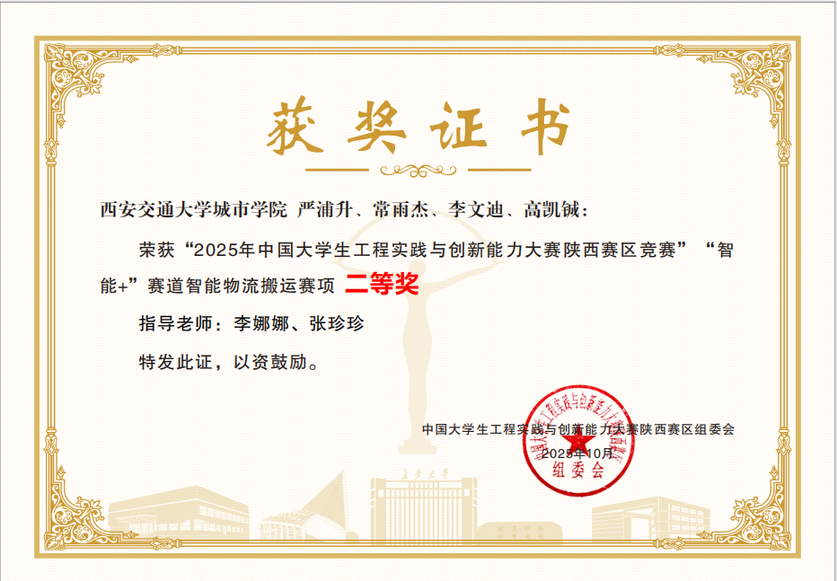 近日,2025年中国大学生工程实践与创新能力大赛结果揭晓。智能制造与新能源学院代表队获省级二等奖3项。