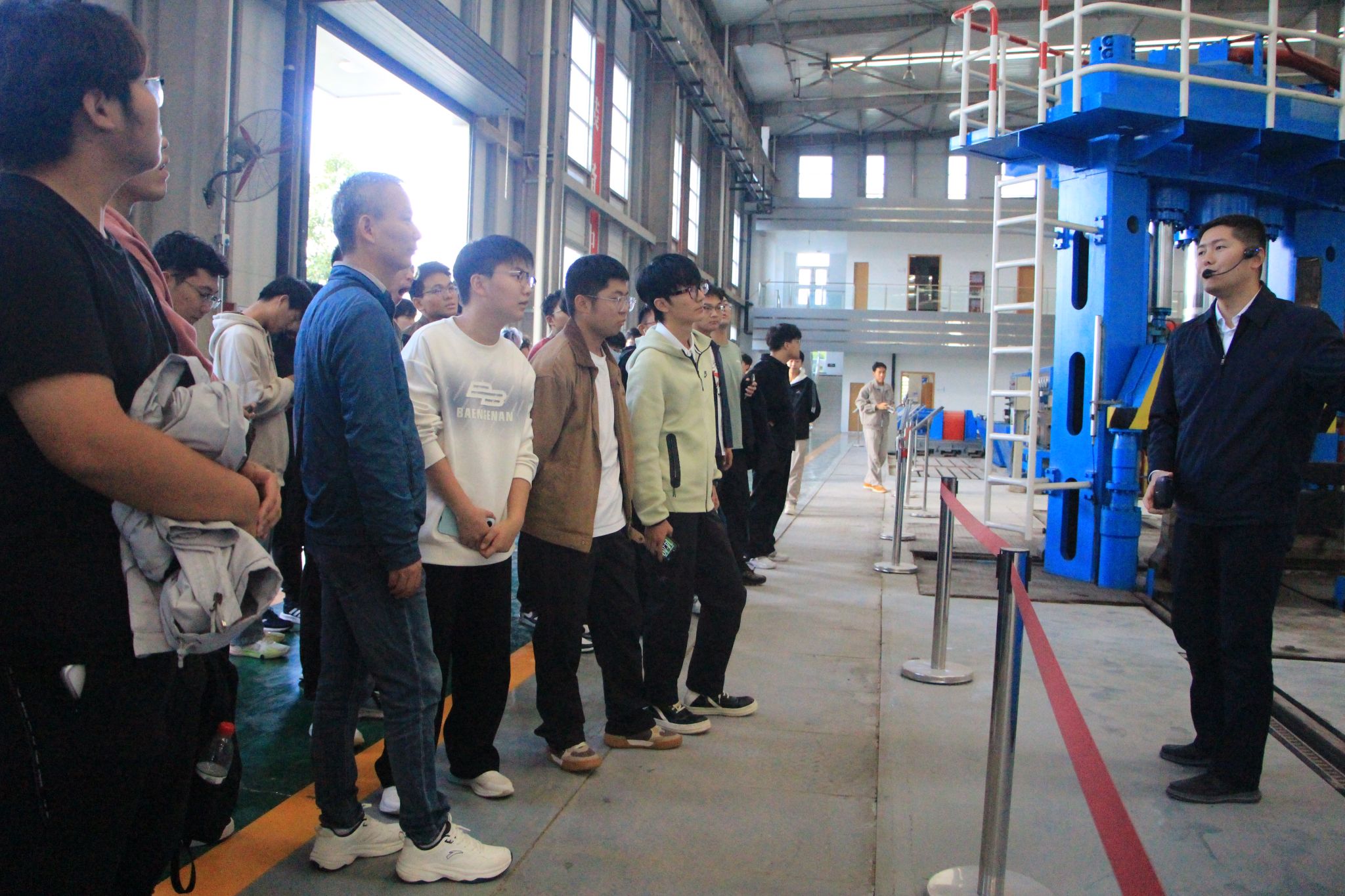活动期间,在重研院领导和工作人员的细致引导下,师生们先后走进金属成型技术与重型装备全国重点实验室、重研院展示中心以及操作调度中心三大核心实践地点:在操作调度中心,让同学们感受到了智能制造的“神经中枢”魅力,巨大的电子屏幕上实时跳动着各类设备的运行数据、生产调度指令和监控画面,工作人员通过智能化系统实现对生产全流程的精准把控。现代化管理模式让同学们直观认识到工业互联网、大数据技术在重型装备制造中的实际价值,深刻体会到“智能化”贯穿于生产、调度、管理的每一个环节。走进展示中心,翻开中国重型机械行业的创新发展史,系统梳理了重研院在重型机械装备研发、智能制造升级、绿色低碳技术创新等方面的重大成果,让同学们对行业的技术突破与未来方向有了更深刻的理解。最后的全国重点实验室,工作人员结合具体项目详细讲解了金属成型领域的前沿技术路径、核心装备从图纸到成品的研发全流程,以及实验室在服务国家重大工程、突破“卡脖子”技术难题中的关键支撑作用。