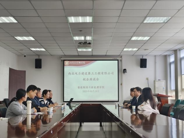 为深入贯彻落实国家关于深化产教融合的战略部署,推动教育链、人才链与产业链、创新链有机衔接,9月19日,智能制造与新能源学院与西北电力建设第三工程有限公司举行校企座谈会。智能制造与新能源学院院长牛海波、院长助理门静、实验室主任赵云芳,电气信息学院院长助理廉宇婷,以及西北电力建设第三工程有限公司总工程师杨斌、人力资源部培训负责人白莹、招聘负责人邓乔予等共同出席了本次座谈。会议由智能制造与新能源学院院长助理王丽丽主持。